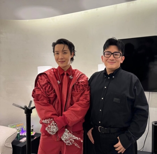 방시혁 의장은 2일 자신의 SNS에 “축하해! 멋진 공연! 정말 감동이다”라는 글과 함께 제이홉, 진과 함께 찍은 사진을 공개했다.