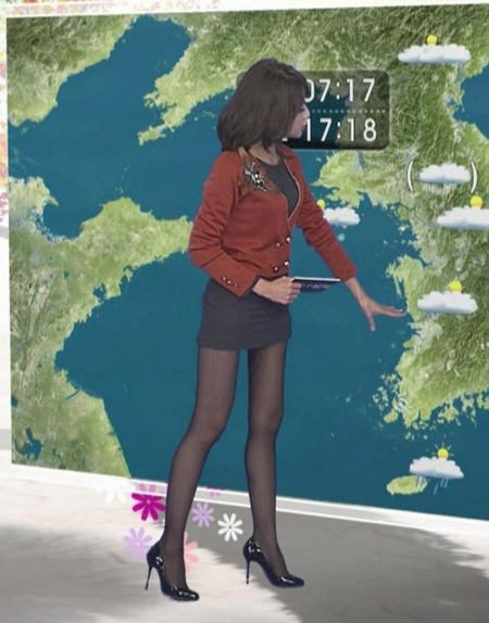 이 가운데 한 온라인 커뮤니티에서는 김혜선 기상캐스터의 방송 모습 사진이 게재돼 눈길을 끌었다. 작은 키를 보완하는 짧은 치마를 입은 김혜선 기상캐스터의 다리 길이가 눈길을 끈다.
