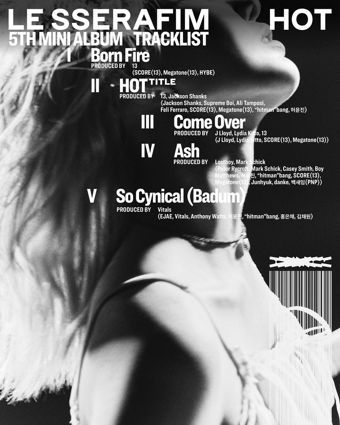 특히 이번 앨범은 멤버들의 참여로 눈길을 끈다. 허윤진은 타이틀곡 ‘HOT’과 수록곡 ‘Ash’, ‘So Cynical (Badum)’까지 총 3곡의 크레디트에 이름을 올렸다. 마지막 트랙 ‘So Cynical (Badum)’은 김채원, 홍은채도 힘을 더해 자신들만의 색을 보여줄 것으로 기대된다.