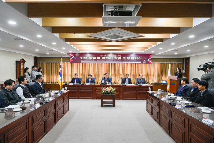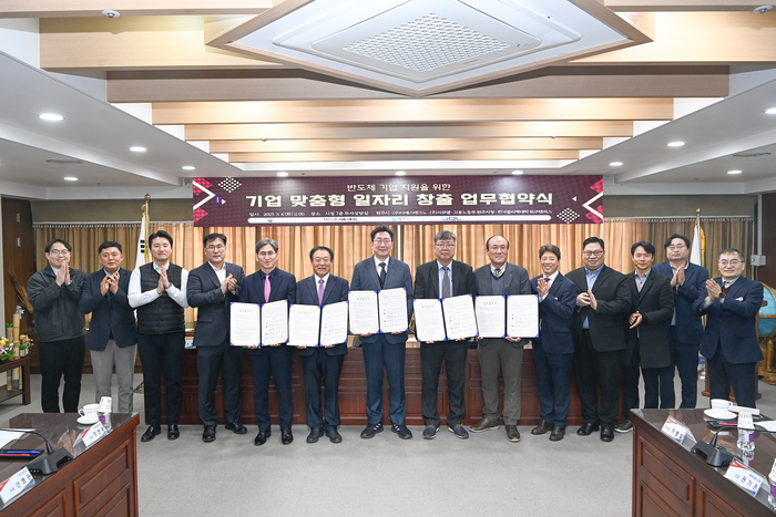 [스포츠서울ㅣ원주=김기원기자]원주시는 3월 4일(화) 시청 7층 투자상담실에서 ㈜디에스테크노, ㈜지큐엘, 한국폴리텍대학 원주캠퍼스, 고용노동부 원주지청과 함께 반도체 기업 지원을 위한 ‘기업 맞춤형 일자리 창출’ 업무협약을 체결했다.