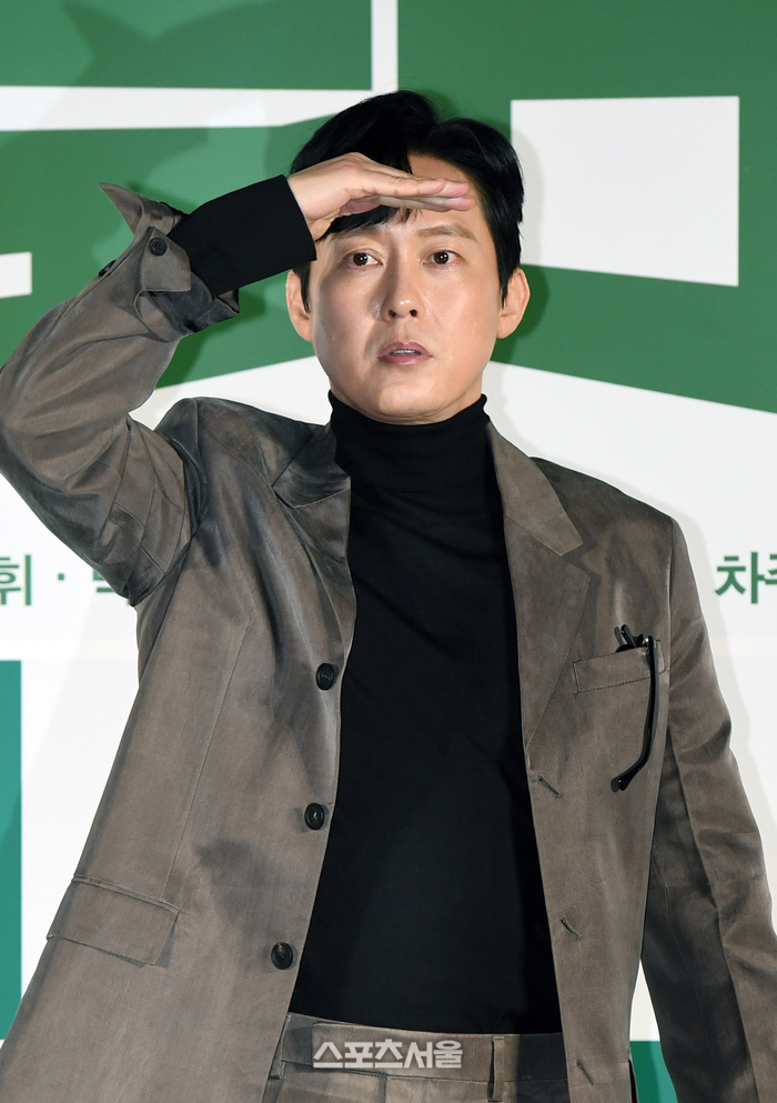 배우 박병은이 4일 서울 광진구 롯데시네마 건대입구점에서 진행된 영화 ‘로비’의 제작보고회에서 취재진을 향해 포즈를 취하고 있다.