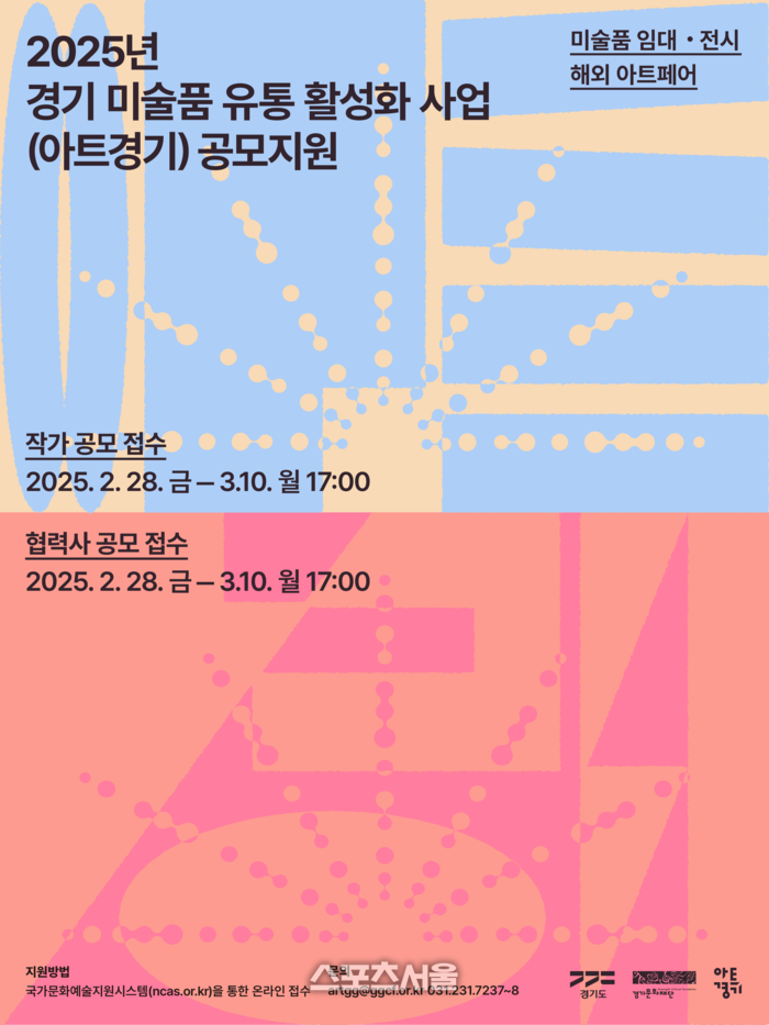 이번 공모에서는 해외 아트페어 참가와 임대·전시사업에 대한 접수가 진행되며, 아트경기 마켓형 전시 협력사업자는 4월 공모 예정이다.