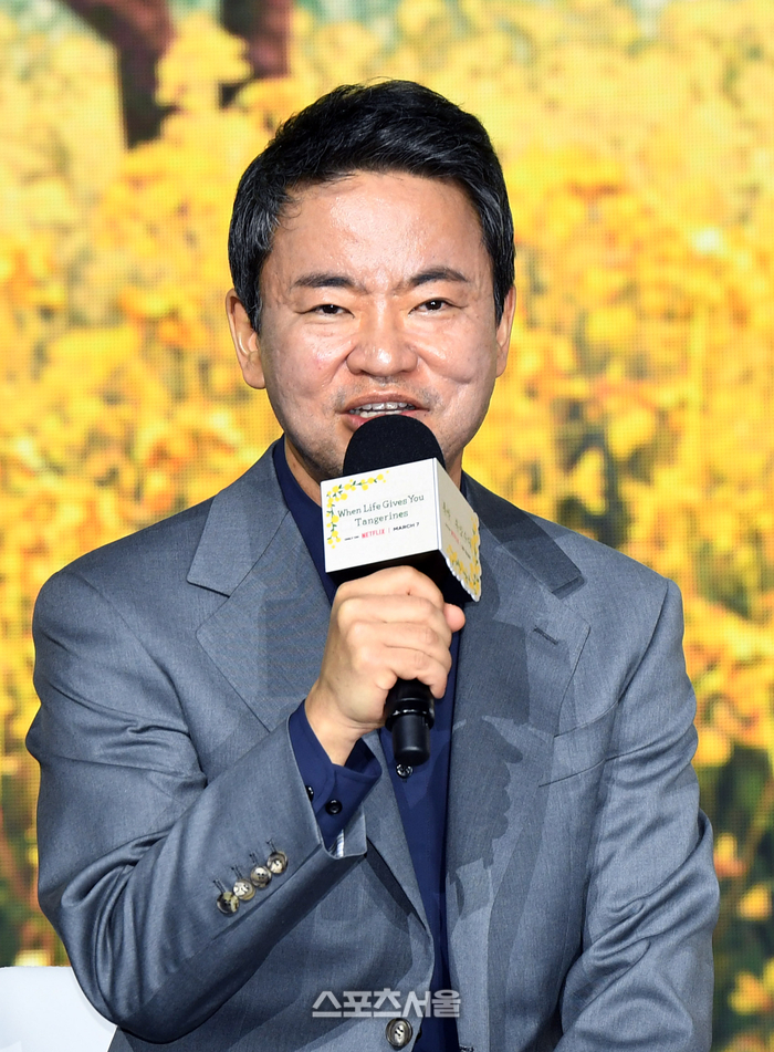 김원석 감독이 5일 서울 영등포구 콘래드호텔에서 진행된 넷플릭스 시리즈 ‘폭싹 속았수다’ 제작발표회에서 인사말을 하고 있다.
