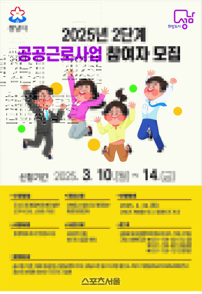 〔스포츠서울│성남=좌승훈기자〕경기 성남시는 오는 10일부터 14일까지 ‘2단계 공공근로사업’ 참여 희망자 455명을 모집한다고 6일 밝혔다