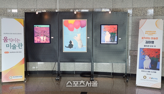 〔스포츠서울│화성=좌승훈기자〕화성특례시의회는 ‘움직이는 미술관’ 3월의 전시로 김미영 작가의 ‘따뜻한 오후의 고양이’전을 로비에서 진행하고 있다.