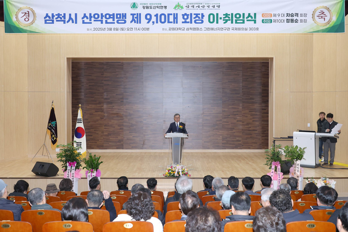 [스포츠서울ㅣ김기원기자]삼척시 산악연맹 회장 이취임식이 8일 강원대학교 삼척캠퍼스 그린에너지연구관 303호에서 열려 제9대 차승격 회장이 이임하고 제10대 정동순 회장이 취임했다.
