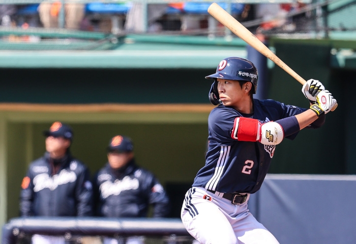 두산은 김민석에게 기대를 걸고 있다. 스프링캠프에서부터 이승엽 감독의 신임을 받았다. 평가전에서 줄곤 1번타자로 기용됐다. 7경기에서 타율 0.375, 4타점, 2득점으로 잘했고, 캠프 야수 MVP로 선정됐다.