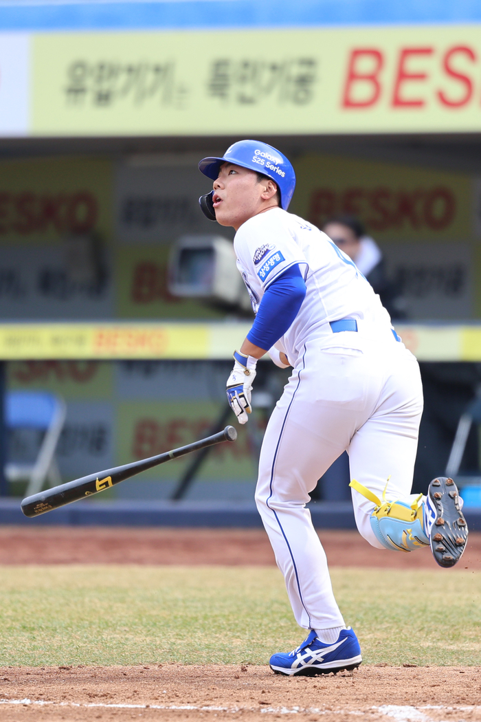 함수호는 10일 대구삼성라이온즈파크에서 열린 2025 KBO리그 시범경기 두산전에서 6회말 좌월 솔로 홈런을 터뜨렸다.