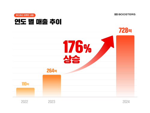 [스포츠서울 | 김종철 기자] 글로벌 커머스 기업 부스터스(대표 최윤호)가 브랜드 사업 개시 3년차인 2024년 매출 728억, 영업이익 91억 원을 기록하며 높은 성장성과 수익성을 동시에 입증했다고 밝혔다. 매출은 2023년 대비 176% 증가했으며 3년 연속 흑자를 달성했다.