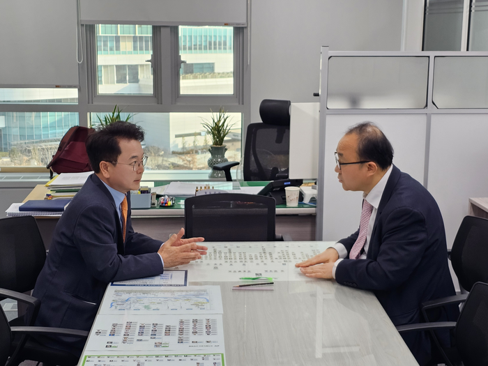 [스포츠서울ㅣ춘천=김기원기자]육동한 춘천시장은 10일 정부 세종청사 국토교통부에서 윤진환 국토교통부 철도국장과 역세권 개발사업, GTX-B 노선 연장 관련 논의를 했다.