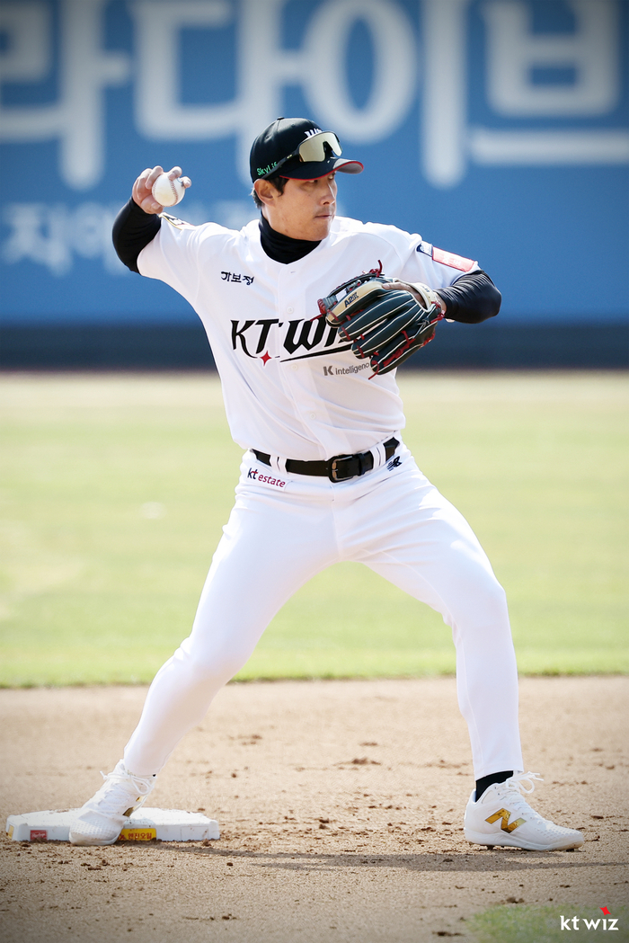 KT는 올시즌을 앞두고 내야진을 개편했다. 자유계약선수(FA)로 허경민을 영입하며 3루를 맡겼다. 황재균은 기존 3루수에서 밀려났다. 다른 포지션을 찾아야 하는 상황. 스프링캠프 당시 내야 전 포지션과 외야 수비까지 연습했다. 마침내 윤곽이 잡혔다.