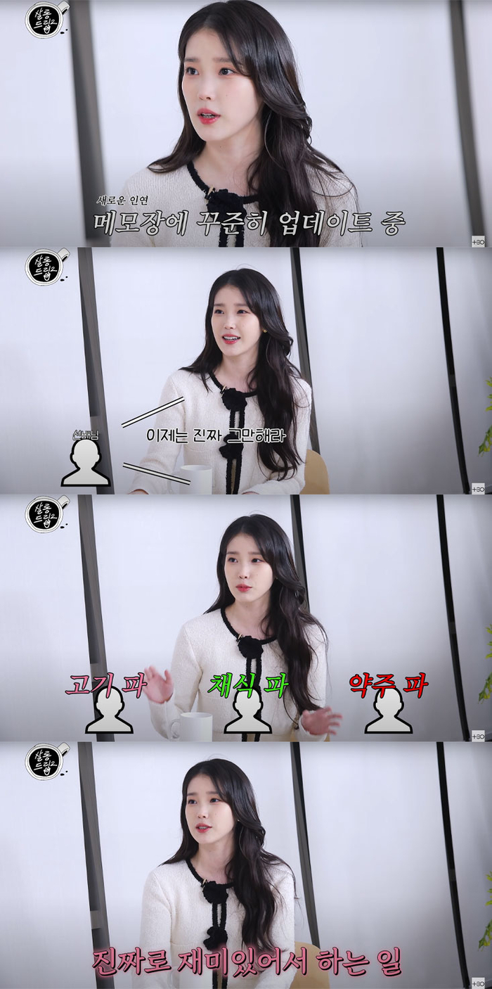 이어 “100명 정도면 리스트가 있냐”는 장도연의 질문에 아이유는 “새로 인연이 닿는 분들이 계시면 메모장에 적어놓고 업데이트한다. 선배님들 측에서 먼저 ‘이제는 진짜 그만해라. 더 보내면 화낸다’라고 말씀하시면 ‘마음으로 보냅니다’ 애교로 선물을 대신한다”라고 답했다.