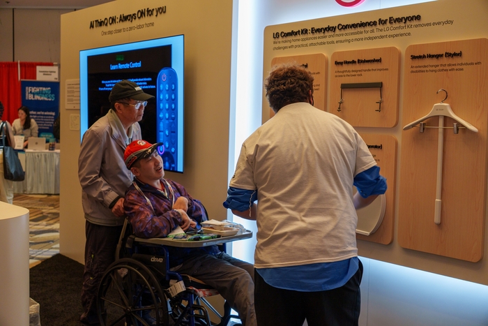 LG전자는 12일(한국시간) 미국 애너하임에서 막을 올린 접근성 콘퍼런스 씨선(CSUN AT 2025)에 단독 전시관을 열고 장애인이나 노인들도 자삿 제품을 편리하게 이용할 수 있는 다양한 기술을 공개했다. 가전을 사용하는 사람이라면 누구나 쉽고 편리하게 이용해 ‘모두의 더 나은 삶(Better Life For All)’을 실현하겠다는 LG전자의 ESG비전을 세계시장에 알리는 셈이다.