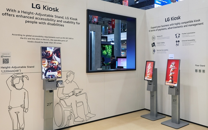 눈에 띄는 제품은 키오스크다. 높낮이 조절이 가능하고 촉각 키패드를 적용해 휠체어 사용자나 키 작은 소비자도 활용할 수 있도록 설계한 게 특징이다. 버튼 하나만 누르면 키오스크 높이를 조절할 수 있다. 촉각 키패드 액세서리도 추가해 시각장애인의 접근성도 높였다.