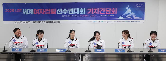 스킵 김은지, 서드 김민지, 세컨드 김수지, 리드 설예은, 핍스 설예지로 구성된 여자 컬링대표팀은 12일 서울 송파구 올림픽회관에서 2025 LGT 세계여자컬링선수권대회 기자간담회에 참석해 출사표를 던졌다.