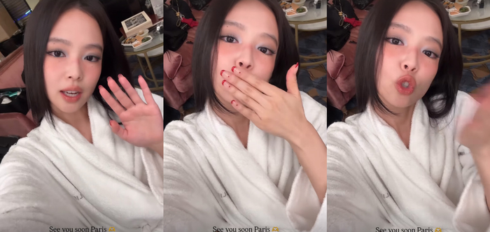 영상 속 제니는 속소에서 샤워 가운을 걸치고 직접 핸드폰을 들어 촬영을 진행했다. 중간중간 리드미컬하게 카메라를 흔들어대며 인사를 이어가던 제니는 마지막으로 손키스로 보내며 팬들의 마음을 설레게 했다.
