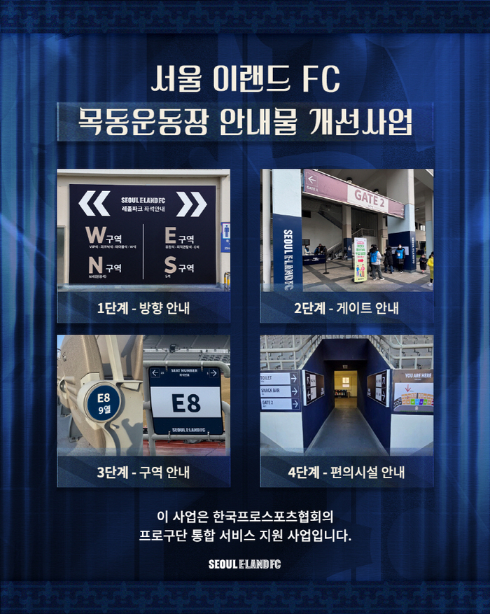 먼저, 팬들이 더욱 쾌적한 환경에서 경기를 즐길 수 있도록 목동운동장의 외관을 새롭게 단장했다. 한국프로스포츠협회 프로구단 통합 서비스 지원 사업의 일환으로 경기장 안내물 개선을 진행해 주요 시설과 좌석 동선을 한눈에 확인할 수 있도록 했다.