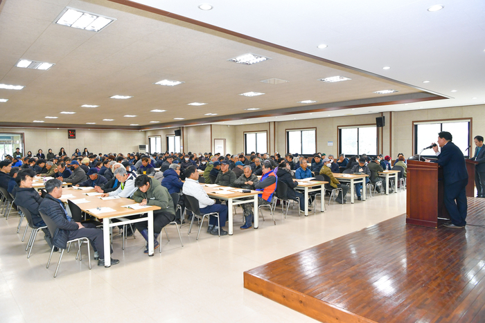 이날 교육에는 지난해 11월 대설피해에 따른 비닐하우스 복구 및 신축, 저온저장고 지원 등 분야별 14개 사업 보조사업자 503명이 모여 보조사업 추진 방법과 주의 사항 등을 전달 받았다.