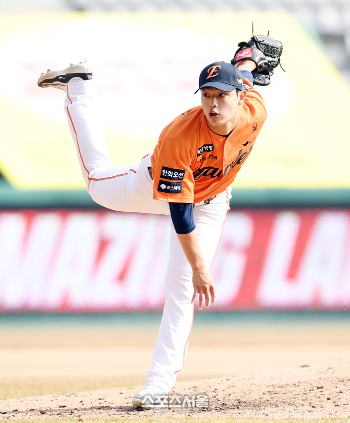 한화 김경문(67) 감독이 웃었다. 문동주(22)가 시원한 피칭으로 부활을 알렸다. 부상은 이제 문제가 없다. 선발 복귀를 위한 과정을 착착 밟고 있다. 스피드로 놀라게 했다. 사령탑은 다른 쪽을 봤다.