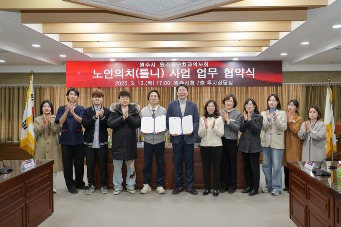 [스포츠서울ㅣ원주=김기원기자]원주시는 이달 13일 ‘2025년 노인의치(틀니) 사업’의 원활한 추진을 위해 원주지구 치과의사회(회장 최승태)와 업무협약을 체결했다.