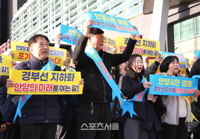 〔스포츠서울│안양=좌승훈기자〕경부선 철도 지하화를 촉구 하는 안양시민들의 목소리가 뜨겁게 울려 퍼졌다.
