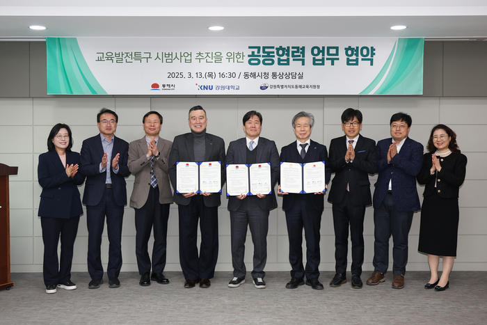 [스포츠서울ㅣ김기원기자]동해시는 강원대 삼척캠퍼스, 동해교육지원청과 손잡고 생애 전 주기 맞춤형 교육 도시 조성을 위한 교육발전특구사업을 본격적으로 추진한다고 밝혔다.