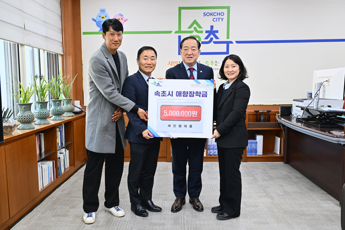전국 | 강원 싸인텔레콤, 속초시 우수 인재 양성 ‘애향장학금 500만 원’ 기탁 입력2025-03-14 11:36:17 북마크 페이스북 트위터 SNS 더보기 가글자크기설정 인쇄 SNS 더보기 닫기 네이버밴드 네이버블로그 URL복사 글자크기 설정 메뉴 닫기 글자크기 설정 시 다른 기사의 본문도동일하게 적용됩니다. 가 가 가 가 가 [스포츠서울ㅣ김기원기자]싸인텔레콤(대표 박영기)은 3월 14일, 속초시청을 방문하여 속초시의 우수한 인재 양성을 위한 애향장학금 500만 원을 기탁했다.acdcok4021@sportsseoul.com 기사추천 0