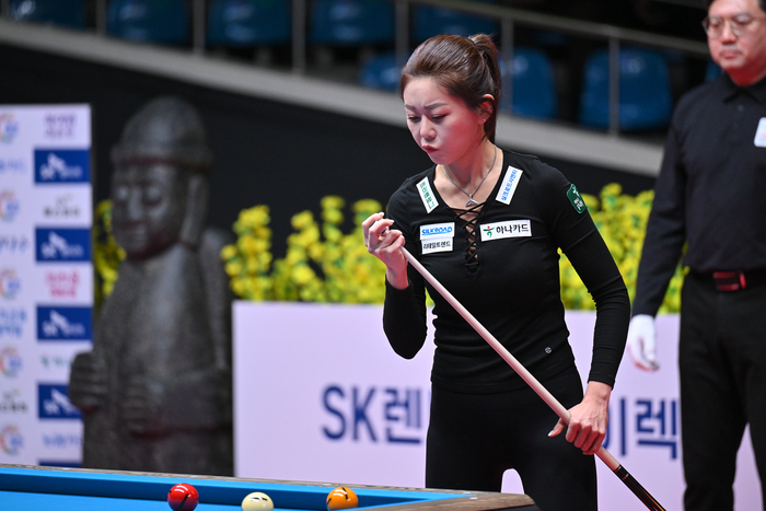 이날 열린 LPBA 16강전에서는 6개 투어 연속 우승에 빛나는 김가영(하나카드)이 장혜리를 세트스코어 3-0으로 제압하고 8강에 올랐다. 스롱 피아비(우리금융캐피탈)는 32강 전체 1위에 오른 정수빈(NH농협카드)를 3-0으로 누르고 조별리그 패배를 설욕했다. 차유람(휴온스)은 ‘일본 3쿠션 전설’ 히다 오리에(일본·SK렌터카)를 3-1로 꺾었다.