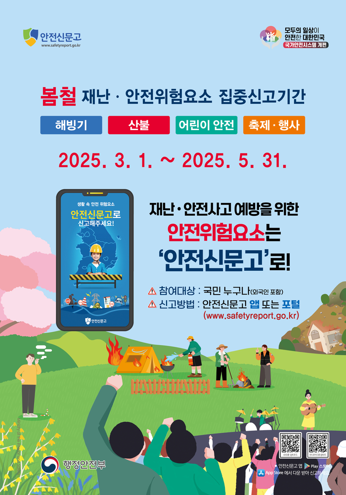 [스포츠서울ㅣ김기원기자]삼척시는 5월까지 봄철 발생 가능성이 높은 해빙기 안전사고, 산불, 어린이 안전사고, 축제 및 행사 안전사고 등을 예방하기 위한 재난·안전 집중신고제’를 운영한다.