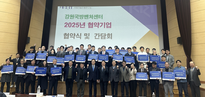 춘천시에 따르면 2025 강원국방벤처센터 협약기업 협약식이 3월 18일 오후 2시 강원대학교 국제회의실에서 국방기술진흥연구소, 강원특별자치도 주관으로 열렸다.