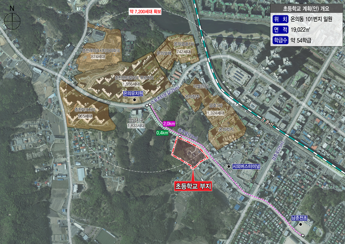 온의동 101번지 일원 1만 9,022㎡, 54개 학급 규모