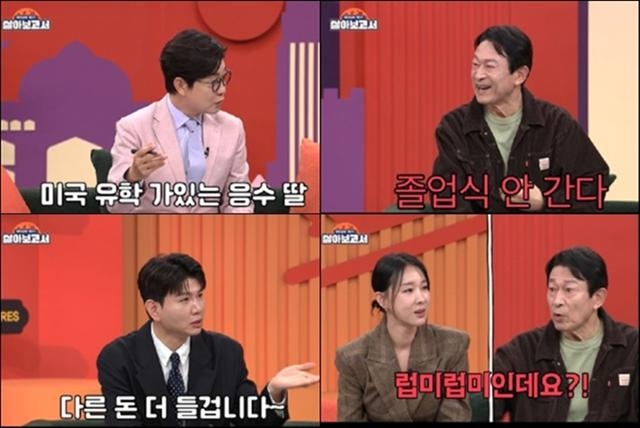 쇼츠 속 김응수는 연예계 대표 ‘딸바보’임에도 “딸 졸업식에 가기 싫다”고 돌발 선언한다. MC 김성주가 “따님이 미국에서 공부 중인데 졸업식은 가셔야 하지 않냐”라고 묻자, “5월 14일에 졸업하는데, 전 안 갈 거다”라며 불참을 선언하는 것. 이에 MC 이지혜와 제이쓴은 “딸 졸업식에 아버지가 안 가면 어떡하냐?”며 대리 걱정을 하고, 그럼에도 김응수는 “비행기를 장시간 타는 게 싫다. 그래서 저는 안 가는 걸로 했다”고 단호하게 답한다. 김응수가 장거리 비행에 거부감을 드러낸 이유가 무엇인지, 그리고 어떤 ‘해외살이 로망’을 갖고 있을지에 궁금증이 모아진다.