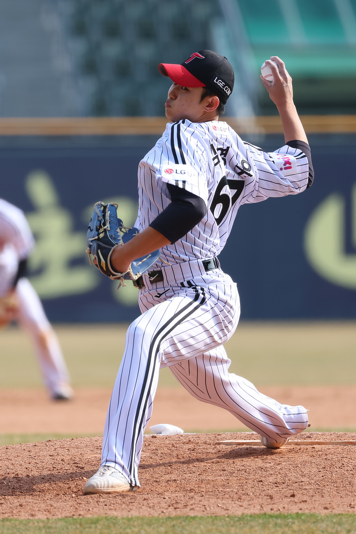 단숨에 마무리 후보로 떠오른 신예도 있다. LG 김영우다. 시속 154㎞를 뿌리며 염경엽 감독의 눈도장을 확실히 찍었다. 실력도 증명했다. 시범경기 다섯 경기에 나서 5이닝을 던지며 단 1점도 주지 않았다. “김영우는 개막 엔트리에 무조건 들어간다. 내가 보장한다”는 염 감독의 근거 있는 확신이다.