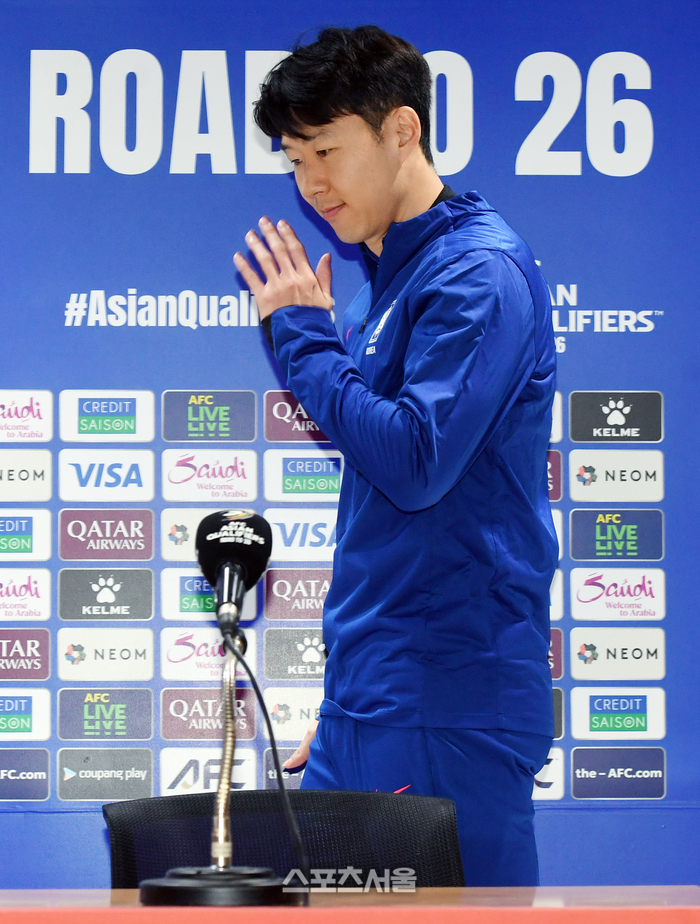 대한민국 축구대표팀의 손흥민이 19일 고양종합운동장에서 진행된 2026 북중미 월드컵 아시아지역 최종예선 오만전 공식 기자회견에 참석하고 있다. 2025. 2. 19.