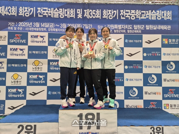 〔스포츠서울│수원=좌승훈기자〕경기주택도시공사(GH) 여자레슬링팀이 올해 국내 첫 대회인 ‘제43회 회장기 전국레슬링대회’에서 출전선수 전원이 개인전 금메달을 딴 데 이어 단체전 우승까지 거머쥐면서 ‘금빛 돌풍’을 일으켰다.