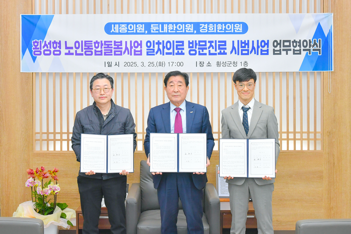 [스포츠서울ㅣ김기원기자]횡성군이 노인 의료돌봄 통합지원 강화를 위해 25일 오후 5시, 군청 접견실에서 세종의원(원장 박찬규, 횡성읍), 둔내한의원(원장 이용, 둔내면), 경희한의원(원장 이승기, 횡성읍) 3개 의원급 의료기관과 ‘일차의료기관 방문진료 시범사업’ 업무 협약을 맺었다.