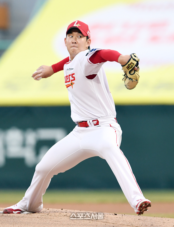 SSG 송영진이 26일 인천 SSG랜더스필드에서 열린 2025 KBO리그 롯데와 경기에 선발 등판해 힘차게 공을 던지고 있다. 2025. 3. 26.