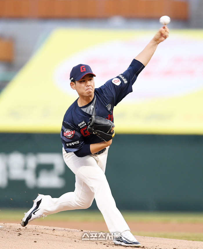 롯데 김진욱이 26일 인천 SSG랜더스필드에서 열린 2025 KBO리그 SSG와 경기에 선발 등판해 힘차게 공을 던지고 있다. 2025. 3. 26.