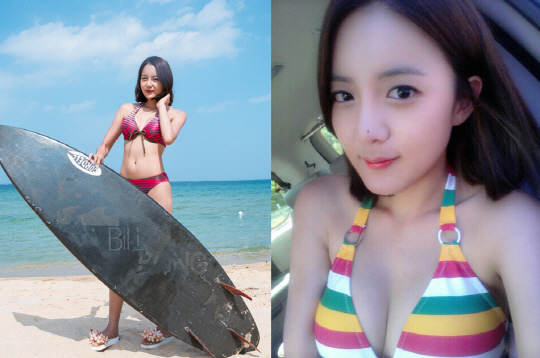 공개 된 사진 속 송은채는 스트라이프 패턴의 캐주얼 한 비키니로 귀엽고 산뜻한 매력을 더하는 동시에 아찔한 볼륨감을 선보였다. 특히, 동안 얼굴에 반전 몸매로 '베이글녀'로 각광받으며 네티즌들의 관심을 끌었다.