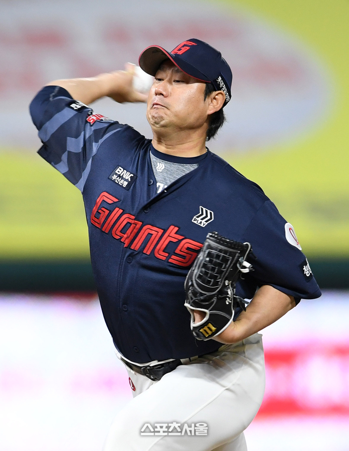 롯데 김상수가 26일 인천 SSG랜더스필드에서 열린 2025 KBO리그 SSG와 경기 8회말 등판해 힘차게 공을 던지고 있다. 2025. 3. 26.