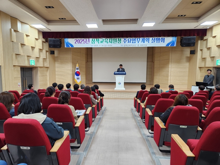 [스포츠서울ㅣ김기원기자]강원특별자치도삼척교육지원청(교육장 홍명표)은 3월 28일(금) 10시 삼척교육지원청 대회의실에서 강원특별자치도의회 의원, 삼척시의회 의원, 유․초․중․고 학부모회장 및 학교운영위원들을 대상으로 주요업무계획 설명회를 개최했다.