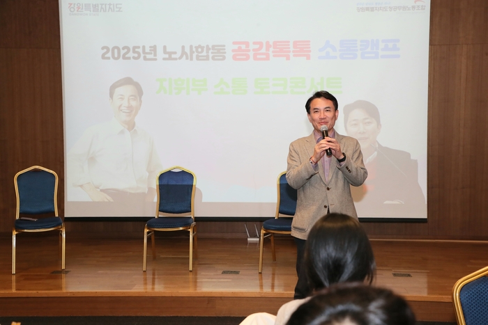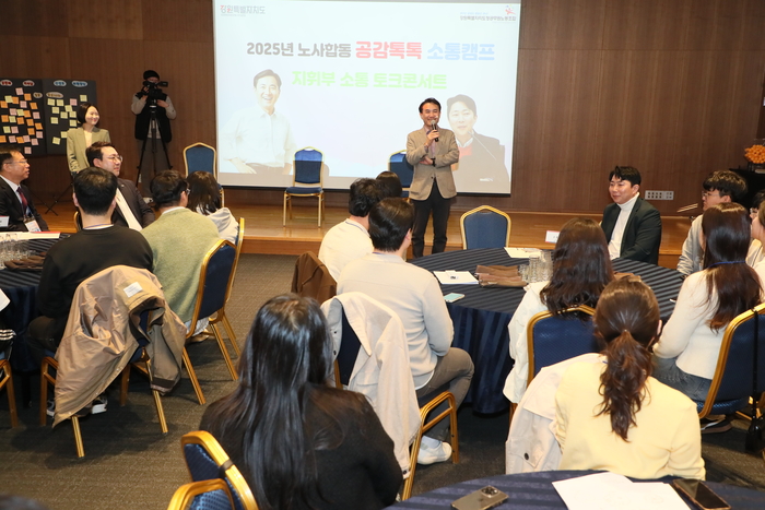 [스포츠서울ㅣ춘천=김기원기자]강원특별자치도(도지사 김진태)가 고성군 델피노 리조트에서 4월 3일부터 4월 4일까지 1박 2일 일정으로 신규·전입 직원 대상(90여 명) 「노사합동 공감톡톡 소통캠프」를 개최했다고 밝혔다.