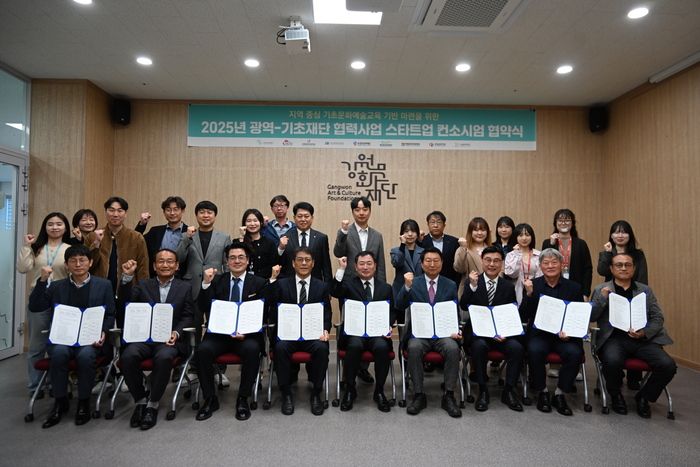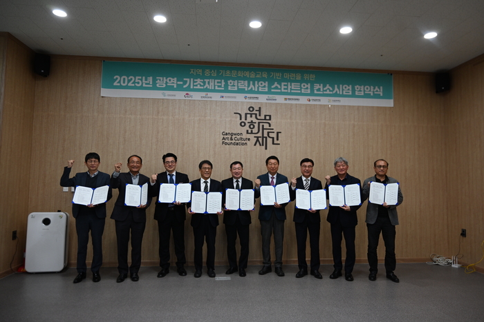 [스포츠서울ㅣ춘천=김기원기자]강원문화재단(대표이사 신현상)은 4월 7일, 광역-기초 간 협력 도모와 강원형 지역 중심 기초 문화예술교육 기반 마련을 위한 ‘기초재단 협력사업 스타트업’ 사업을 추진하기 위해 8개 지역 기초문화재단과 컨소시엄을 체결했다고 밝혔다.