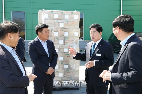 [스포츠서울|조광태기자] 우주항공도시 전남 고흥군(군수 공영민)은 7일 두원농협 유자가공 사업소에서 공영민 군수와 두원농협 및 원인터내셔널 임직원이 참석한 가운데 고흥 유자차 수출 상차식을 가졌다.