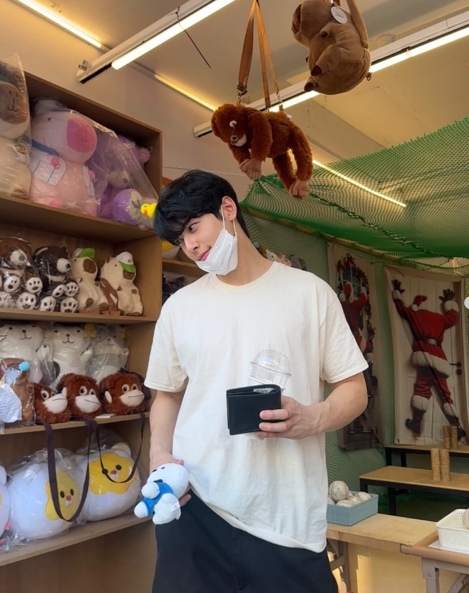 공개된 사진 속 차은우는 흰색 반팔 티셔츠에 편안한 복장을 입고 봄날의 즐거움을 만끽하는 모습이다.