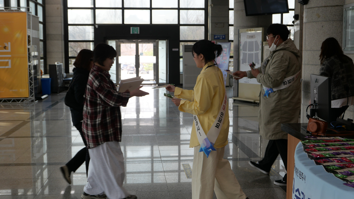 [스포츠서울ㅣ원주=김기원기자]원주시는 지난 4일 치악예술관에서 열린 ‘영유아 흡연 위해’ 예방교육 및 아동학대 예방·신고의무자 교육에 참석한 어린이집 교직원 350여 명을 대상으로 아동학대 예방 캠페인을 진행했다.