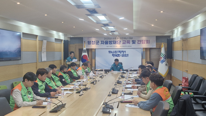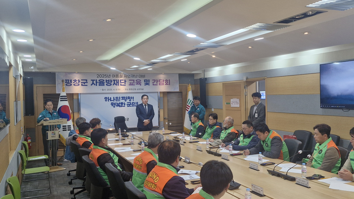 [스포츠서울ㅣ김기원기자] 평창군은 8일 군청 소회의실에서 권혁영 도시안전국장과 이화진 자율방재단장을 비롯한 읍면 자율방재단 대표 등 30명이 참석한 가운데 2025년 자율방재단 활동에 따른 간담회 및 교육을 개최했다.