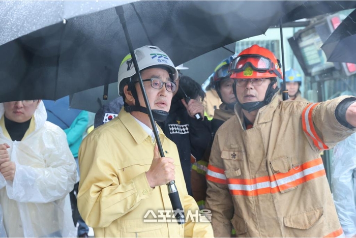 오후 5시 15분경 붕괴사고 현장에 도착한 김 지사는 경기도소방재난본부 관계자로부터 구조 상황에 대한 보고를 받고 “다행스럽게 매몰된 두 분 중에 한 분은 구조가 되셨고 한 분이 아직 구조가 안돼 안타깝다”며 “비에 따른 추가 붕괴 위험과 여러 가지 상황 점검 문제로 잠시 구조 작업이 중단돼 있지만 여건이 갖춰지는 대로 빠른 시간 내에 구조할 수 있도록 최선을 다해 달라”고 말했다.