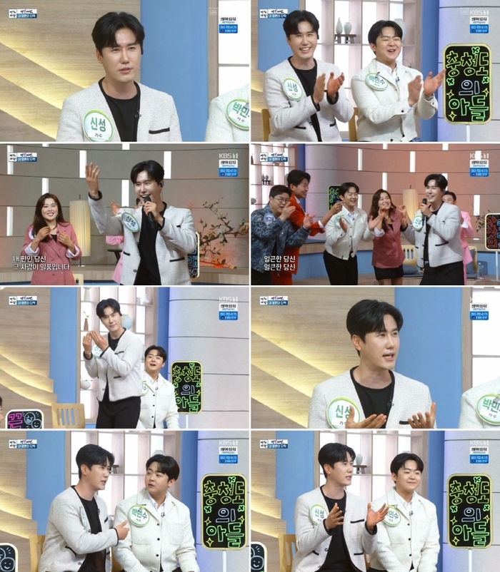 신성이 14일 방송된 KBS1 ‘아침마당’의 월요일 코너 ‘명불허전’에 가수 박민수와 함께 출연, ‘환장의 호흡’을 선보여 웃음을 선사했다. 이날 ‘내 영혼의 단짝’ 특집으로 진행된 ‘아침마당’에서 박구윤X김용필, 홍지민X이도진과 함께 모습을 드러낸 신성은 자신을 “‘아침마당’이 낳은 스타, 충청도 예산이 낳은 아들”이라고 ‘셀프 홍보’하며 월요일 아침부터 ‘기세’를 폭발했다. 짝꿍으로 함께한 박민수에 대해서도 “‘예산의 아들’ 신성이 인정한 심성 좋고, 노래 실력 좋고, 넉살은 더 좋은 ‘서천의 아들’”이라 소개하며, 박민수와 ‘충청도 단짝 라인’을 결성해 시선을 사로잡았다.