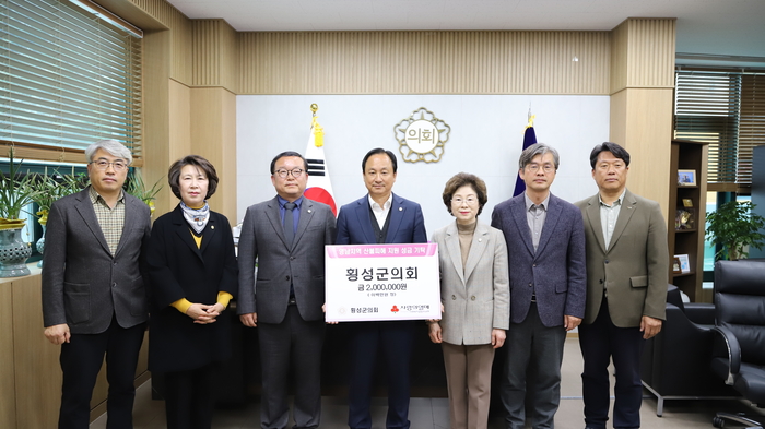 [스포츠서울ㅣ김기원기자]횡성군의회(의장 표한상)는 14일, 영남지역 일원에서 발생한 산불 피해 복구와 이재민 지원을 위해 성금 200만 원을 사회복지공동모금회(사랑의열매)에 기탁 했다.